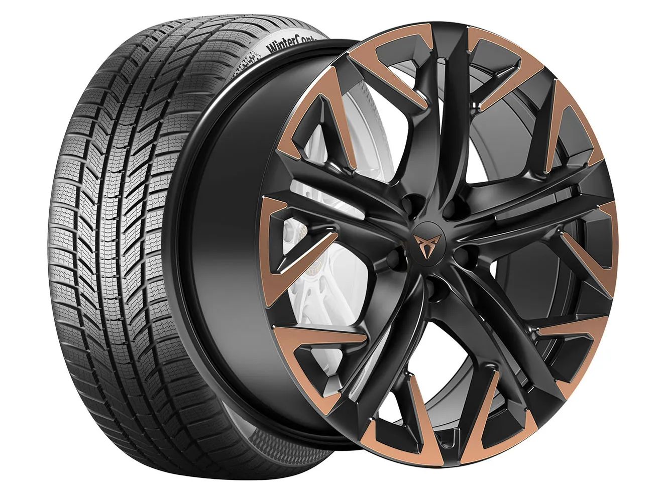 * Ponuka platí do 30.4. 2026 alebo do vypredania zásob. Uvedené ceny sú nezáväzné odporúčané MOC s DPH. Uvedené ceny kolies platia pri kúpe sady 4ks kompletných zimných kolies. Všetky uvedené zimné pneumatiky majú symbol 3PMS (3 Peak Mountain Snowflake) a sú špeciálne testované v autentických vonkajších podmienkach a schválené v súlade s predpismi. Pre detailné informácie týkajúce sa použitia pneumatík na konkrétne vozidlo vás upozorňujeme na rozmery zapísané v COC daného vozidla a/alebo v schvaľovacom protokole. Odporúčame použiť povolené rozmery kolies. Viac informácií získate u CUPRA partnera. Vyhradzujeme si právo zmeny v cenách, dizajne, tvare a špecifikáciách uvedených produktov bez predchádzajúceho upozornenia.